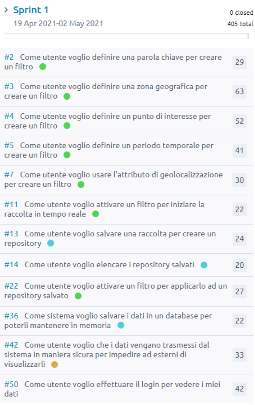 Durante questo sprint è stata prodotta dal Product Owner la seguente valutazione sulle User Stories: