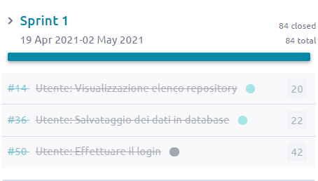 Altre issue sono state inserite ma possono essere sistemate nello sprint successivo in quanto non influiscono sul funzionamento atteso in questo primo sprint.